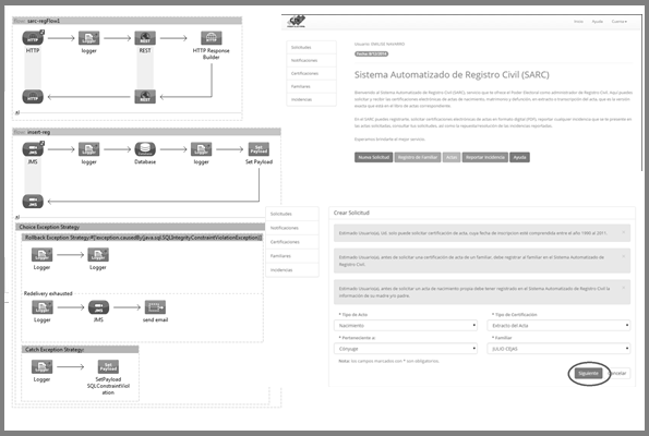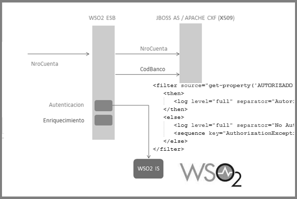 WSO2 Identity Server, WSO2 Enterprise Service Bus y Apache CXF-Spring proporcionó las bases técnicas para estandarizar la gestión de identidades para APIS y Servicios proxys SOAP y Apache CXF para el desarrollo de servicios seguros mediante certificados X509.